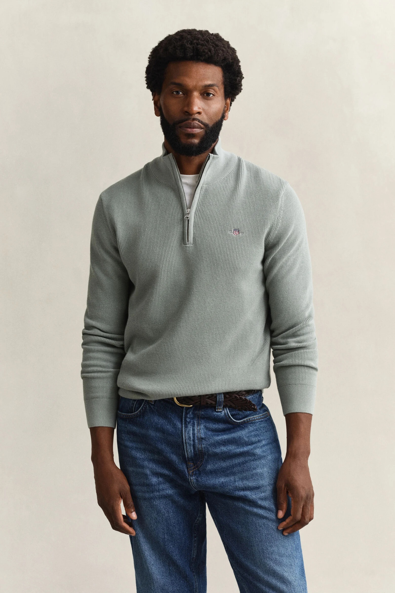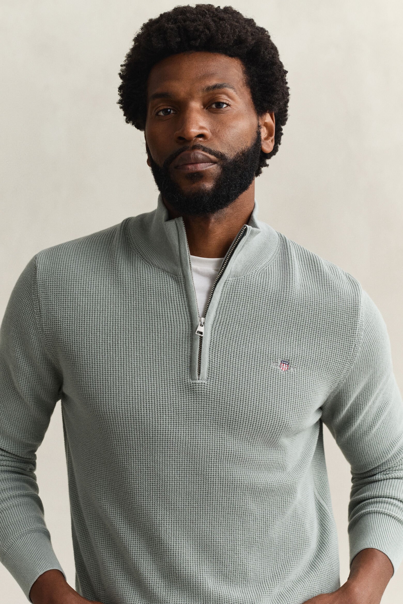 Gant Micro Textured Cotton Half Zip Sweater – Ceramic Grey